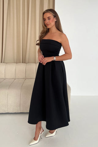 Effortlessly elegant and designed to flatter every figure, the Danni Midi Dress in classic black is the piece your wardrobe has been waiting for. Crafted in a luxurious premium stretch fabric (95% Polyester, 5% Elastane), it moves beautifully with you from morning to midnight.